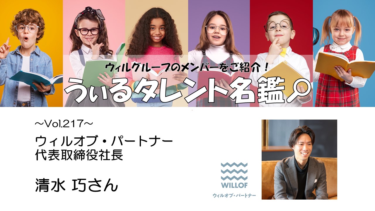 2024年、ウィルグループにジョインした、ウィルオブ・パートナーの設立者である清水さん。